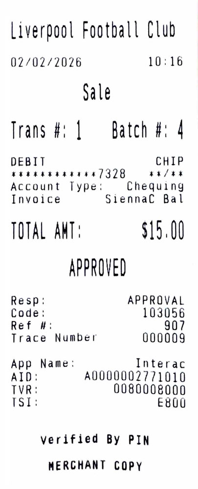 - Transaction # (from receipt)