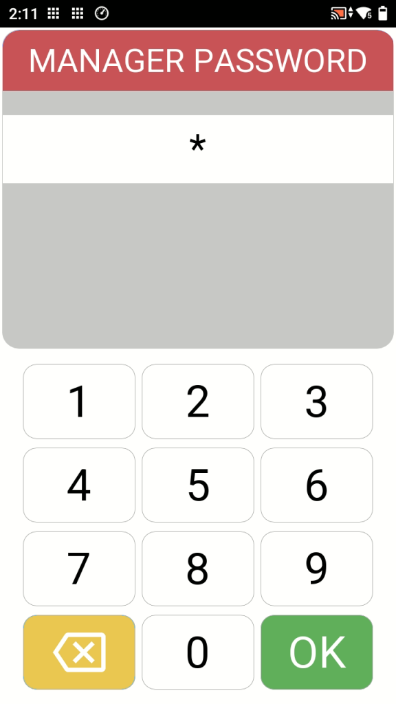 Some actions require a manager password. The default password is 1234.