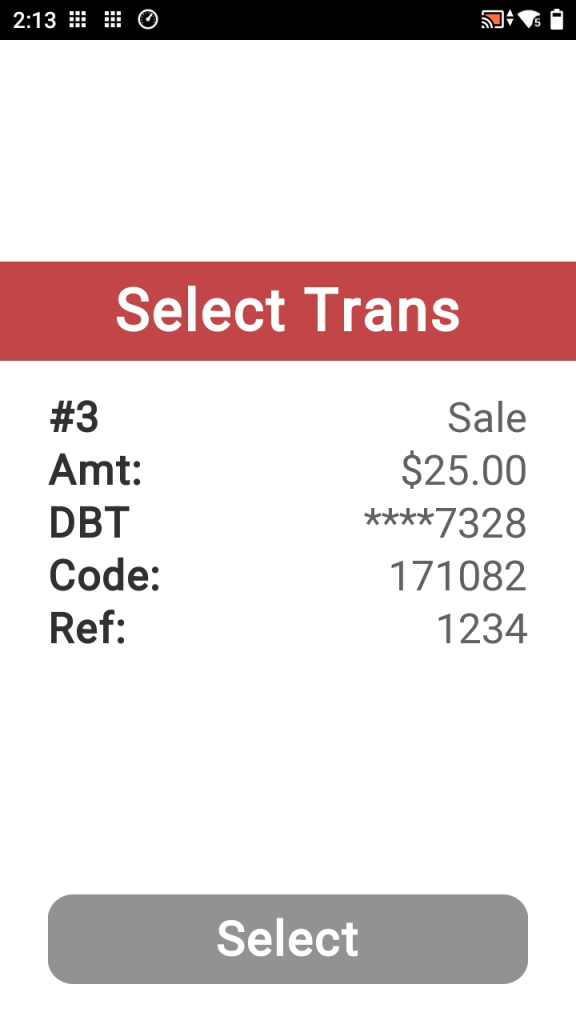VOID TRANSACTION (Same Day Only)